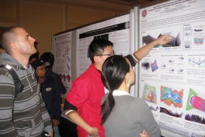 10/28/2010 Hanqi showing poster to audience in Visweek 10/29/2010 Hanqi and Xiao He with the poster