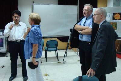 | 09/23/2011 Berlin Free University guests visiting lab | 09/23/2011 Prof. Yuan discussing with the guests |